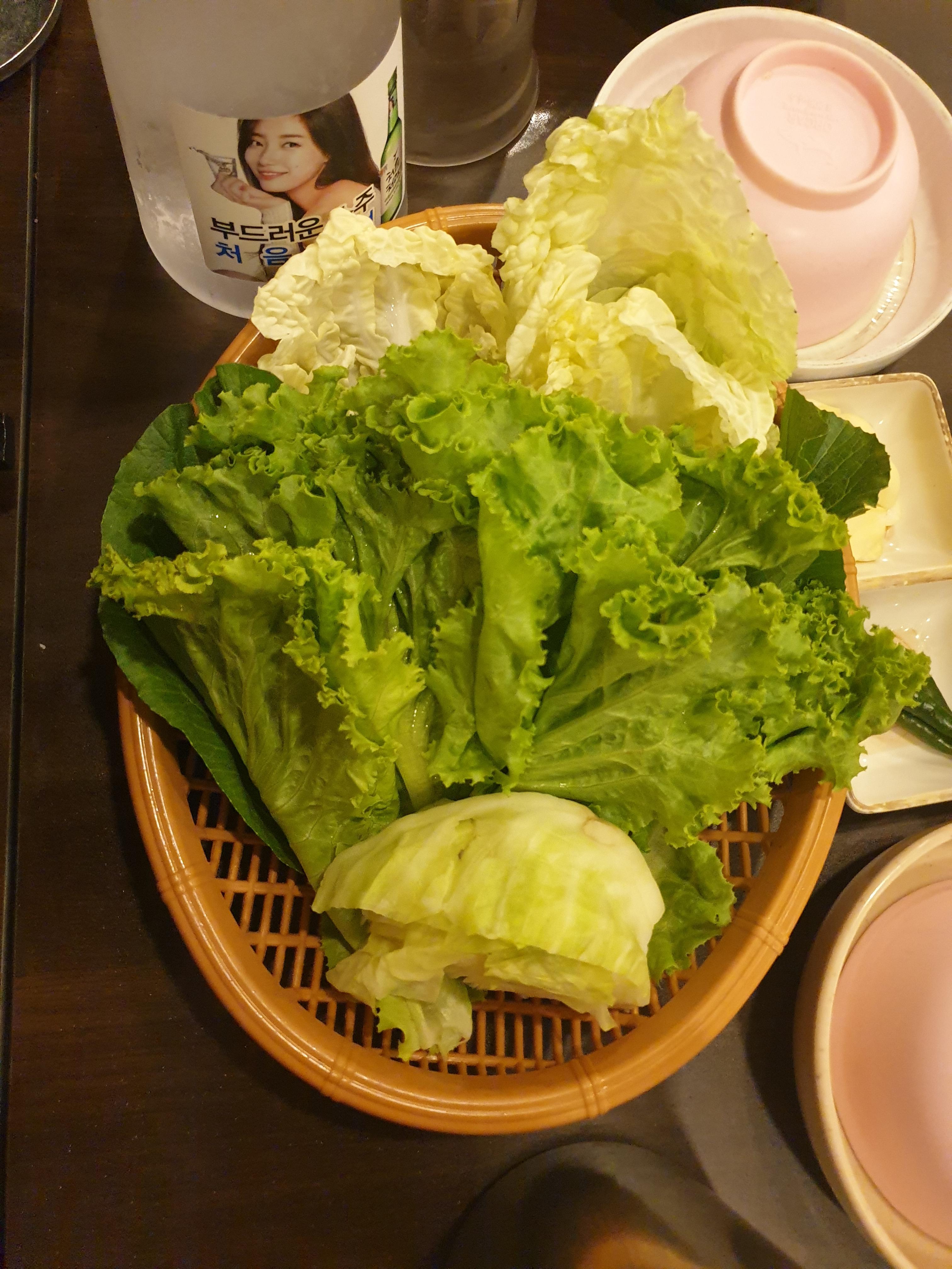 그래도 삼겹살 먹을 때 김치 주니까 잘 먹었어요