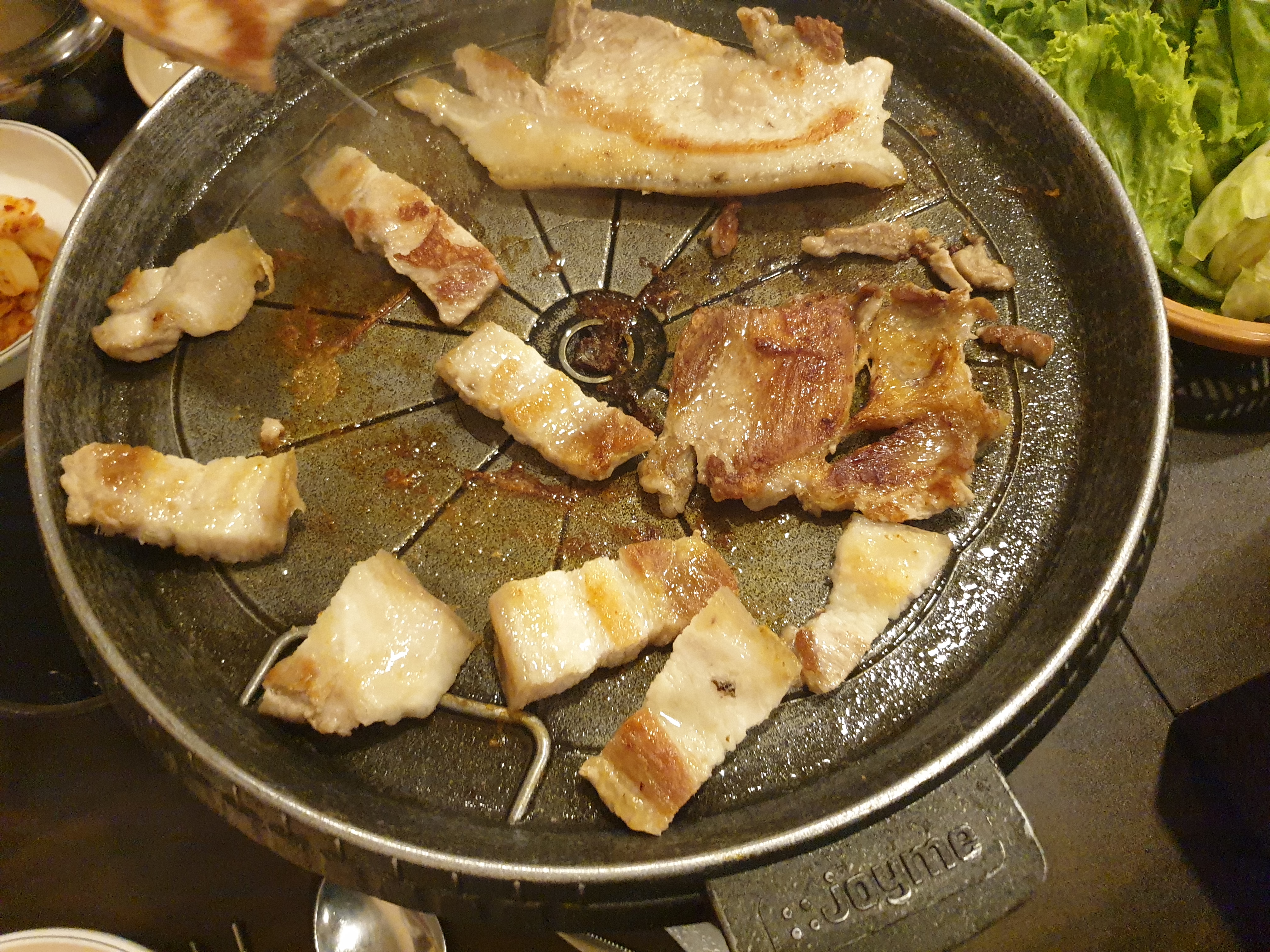 그런데 이런 불판과 삼겹살을 보면 볶고 싶은걸 참지 못하고 결국 볶아버렸네요.