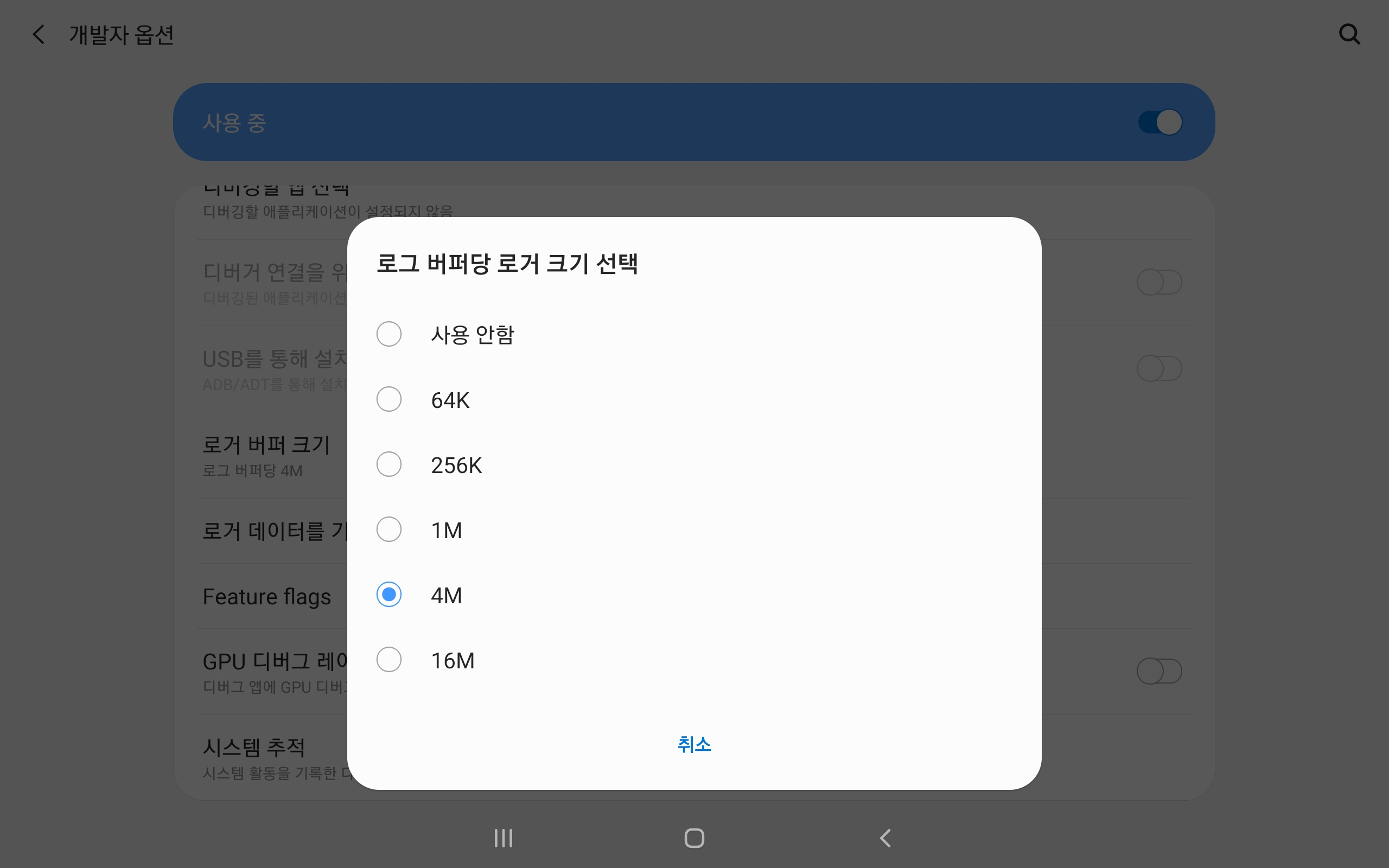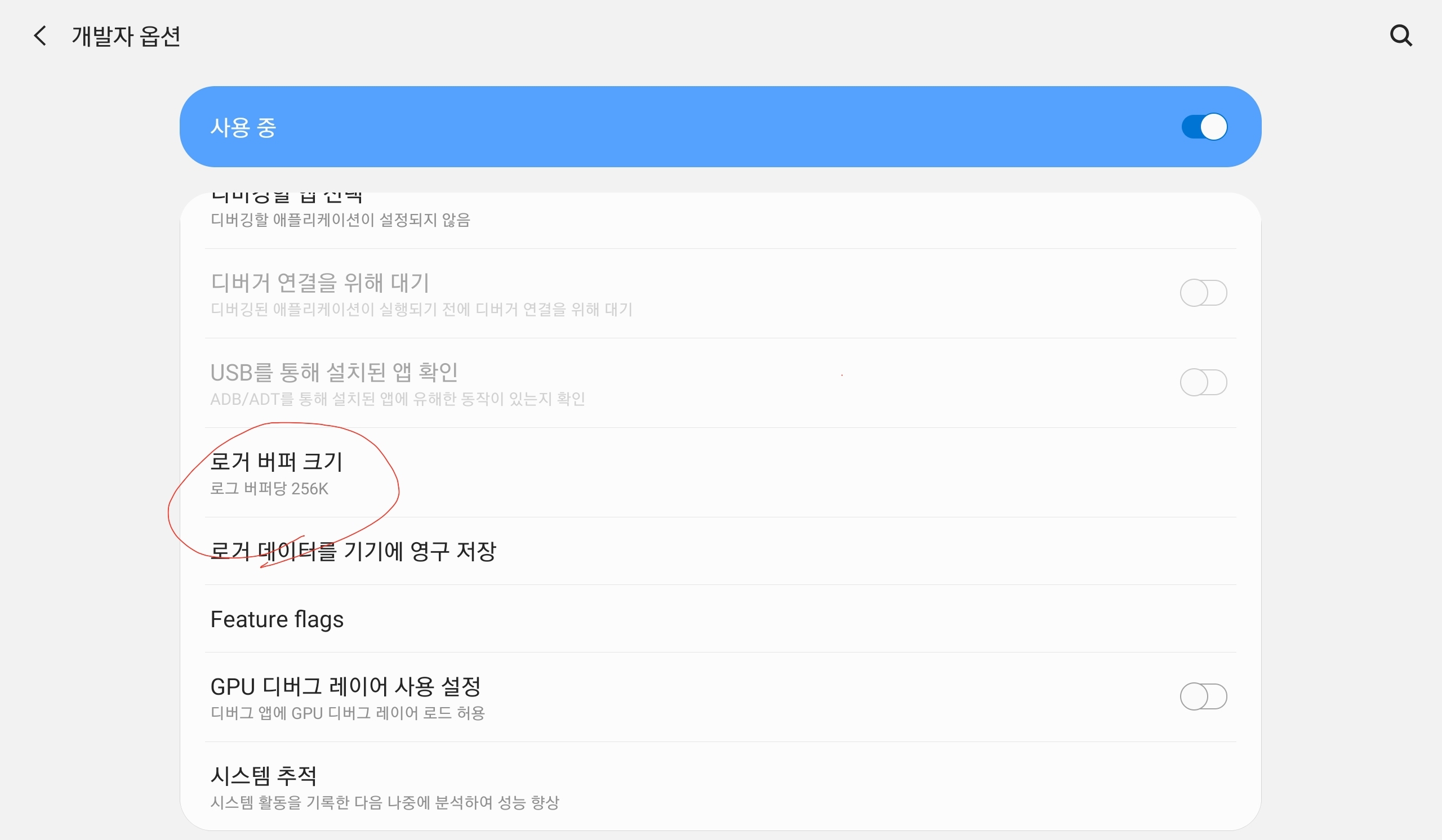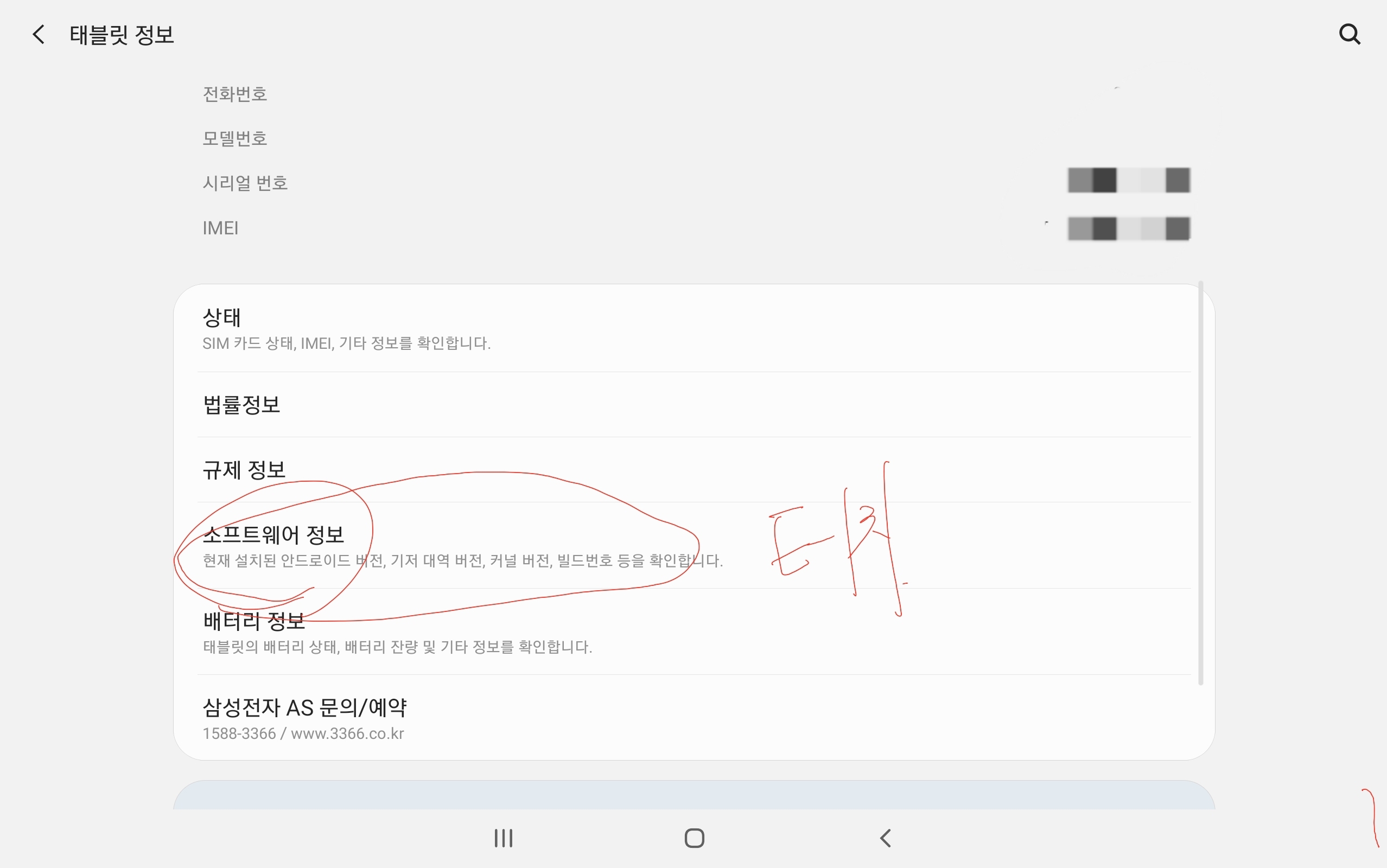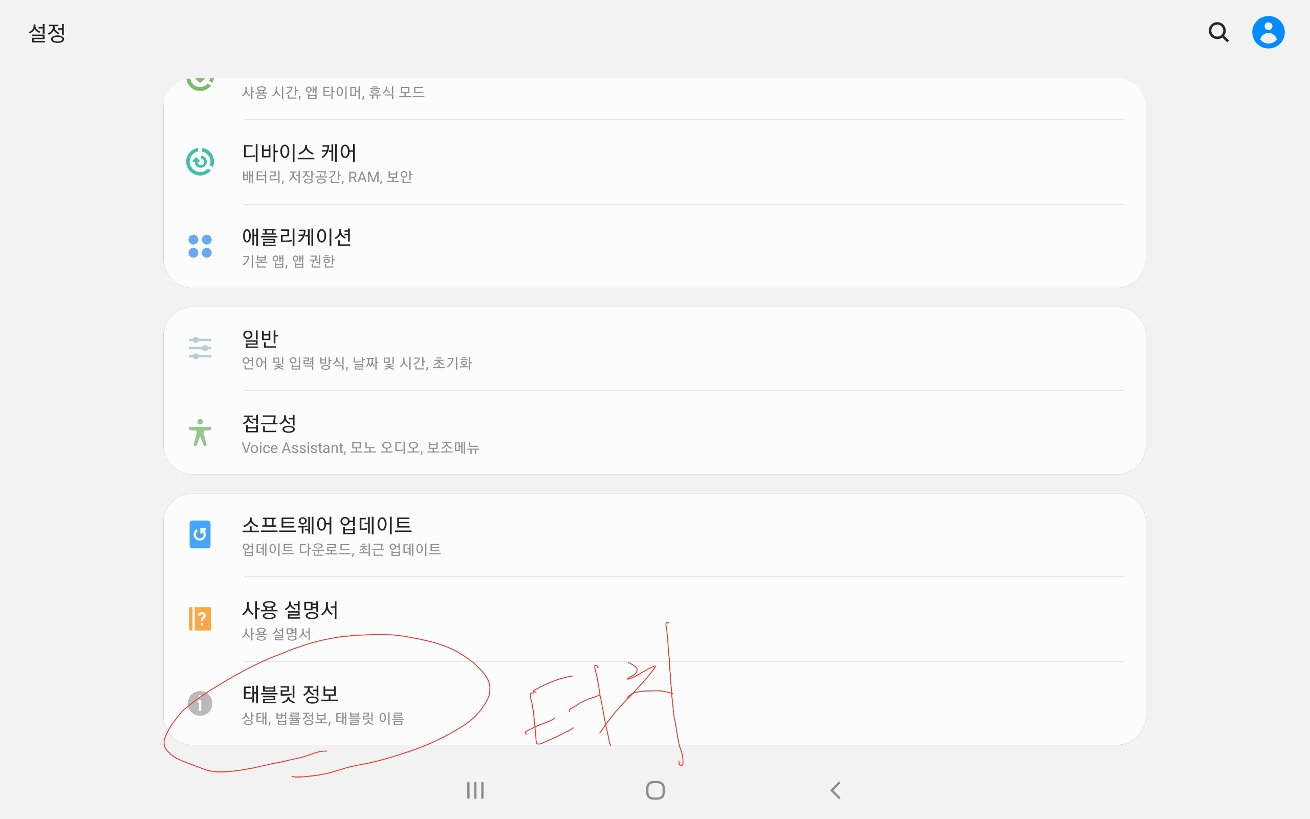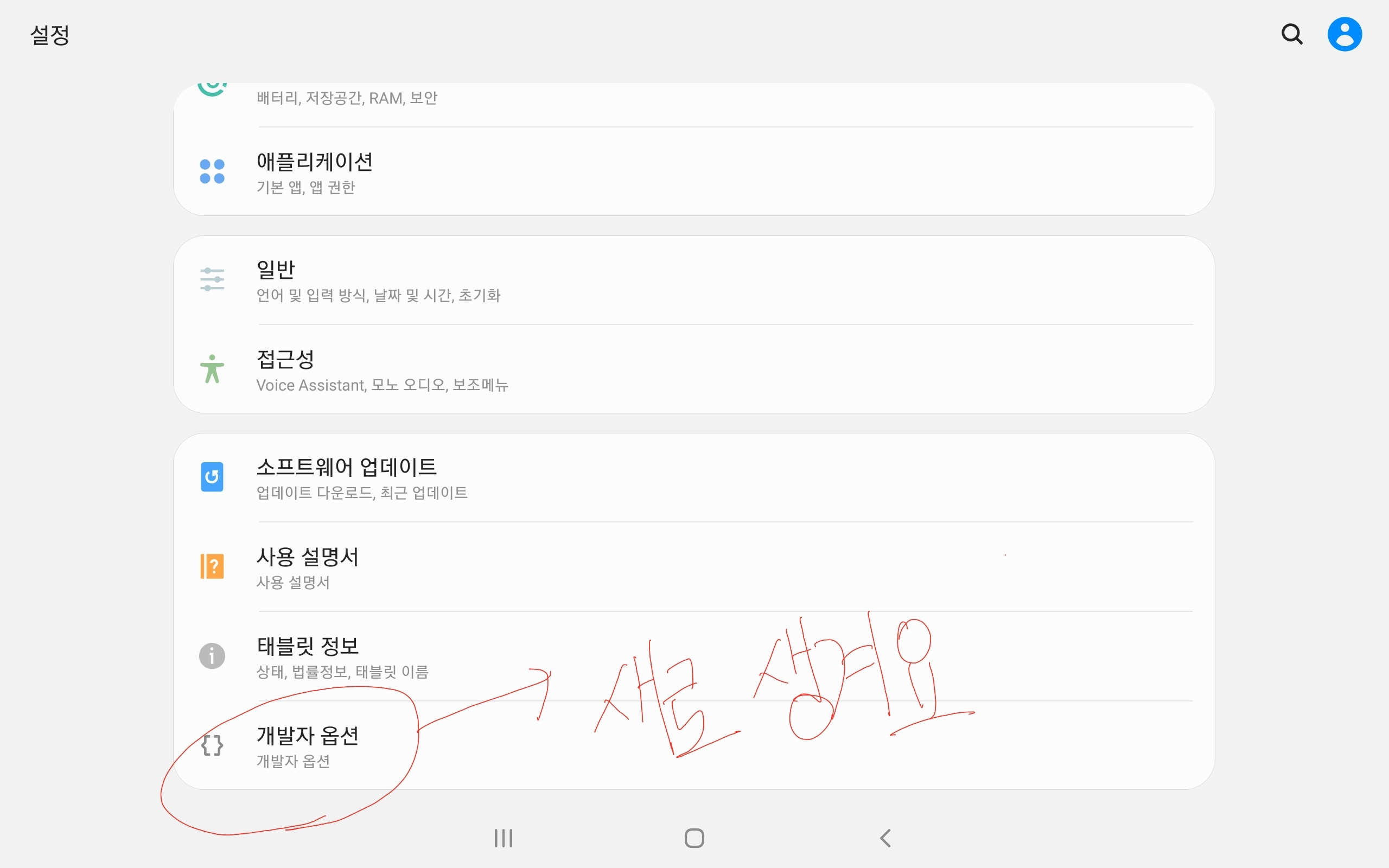 설정창으로 다시 들어가면 테블릿 정보 아래 개발자 옵션이 새로 생겼습니다.