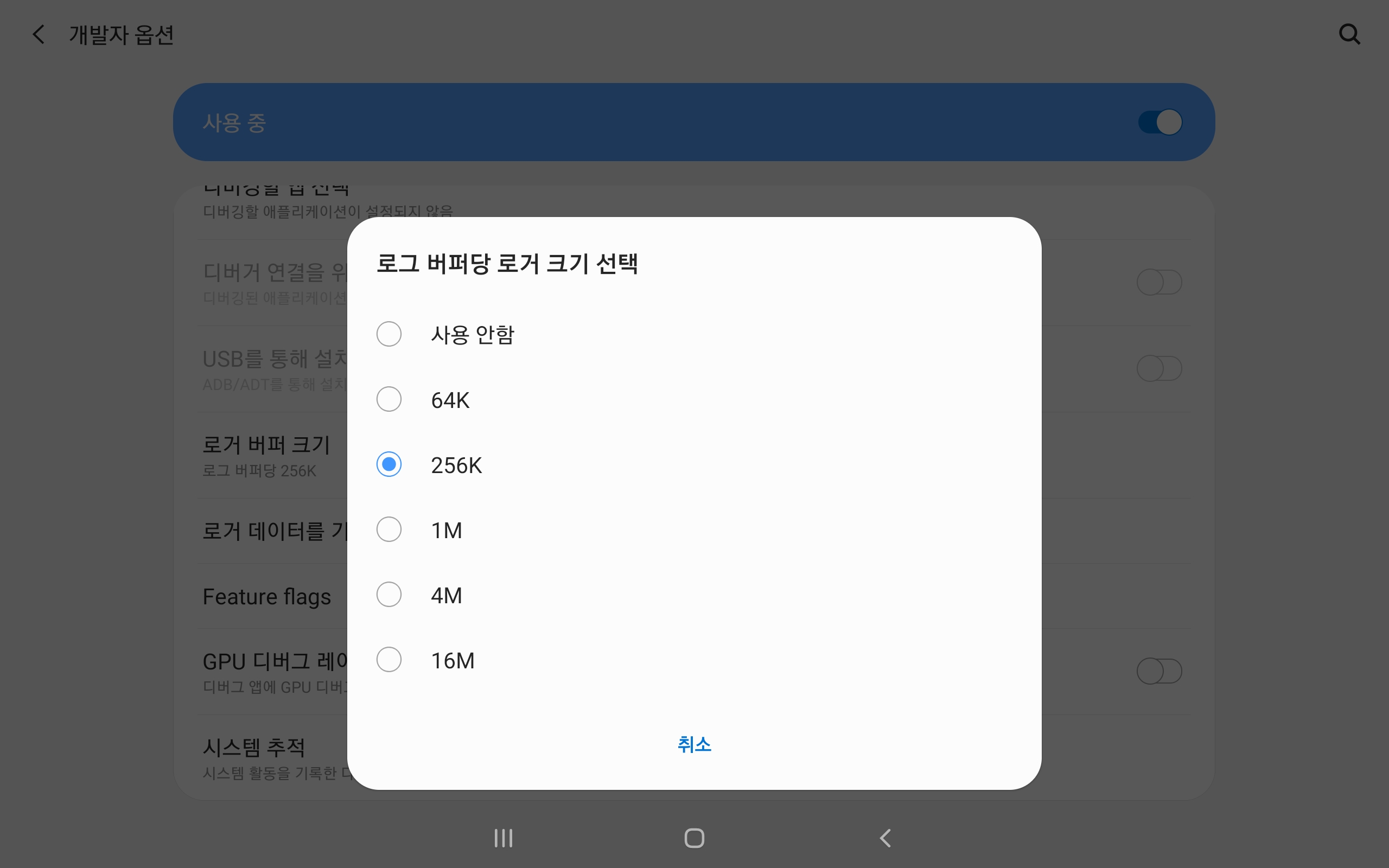 처음 설정에 들어가면 256k로 설정이 되어 있는데