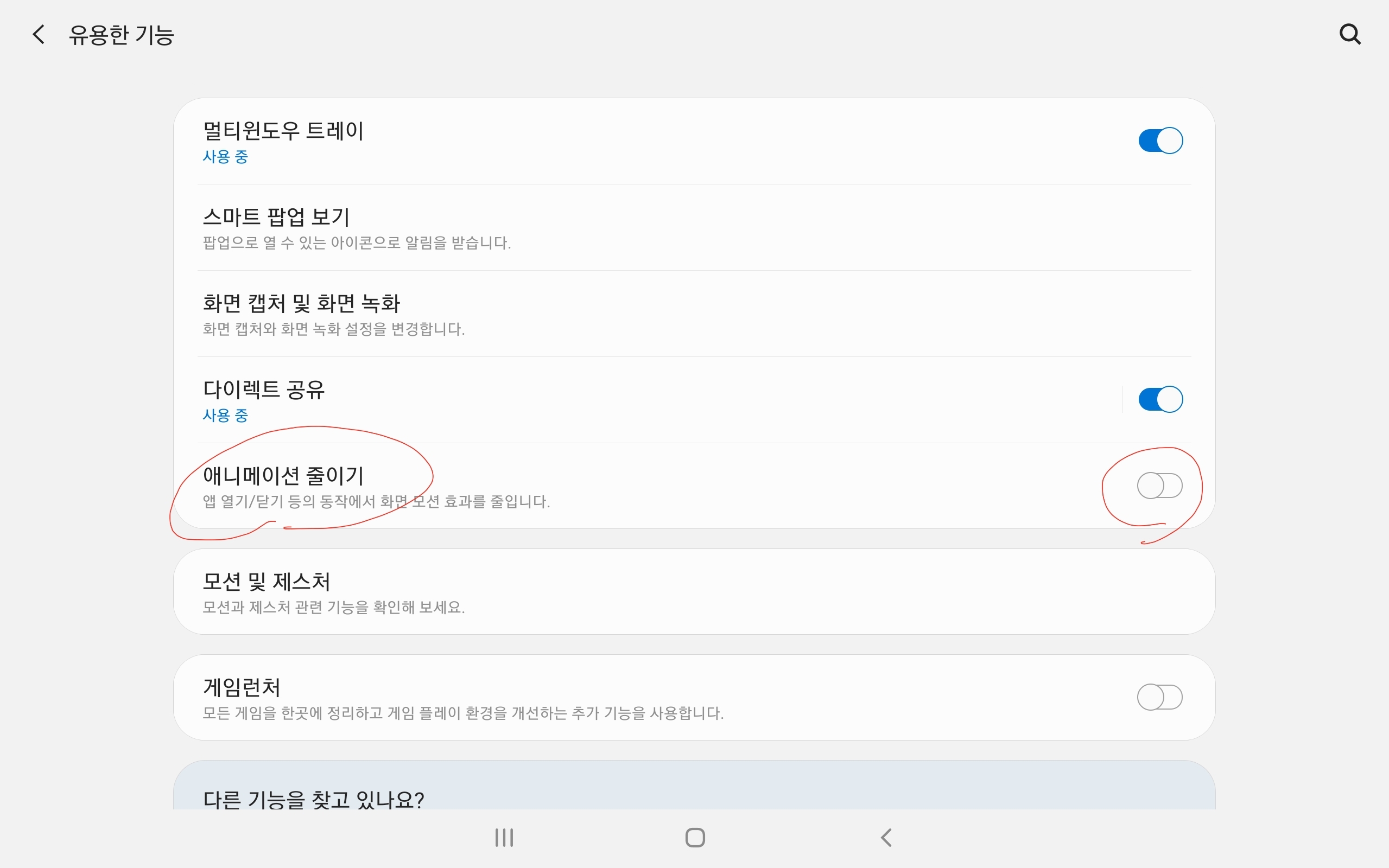 s펜 모션 제스쳐 등을 컨트롤 할 수 있는데 화면 로딩 속도를 컨트롤 할 수도 있습니다.