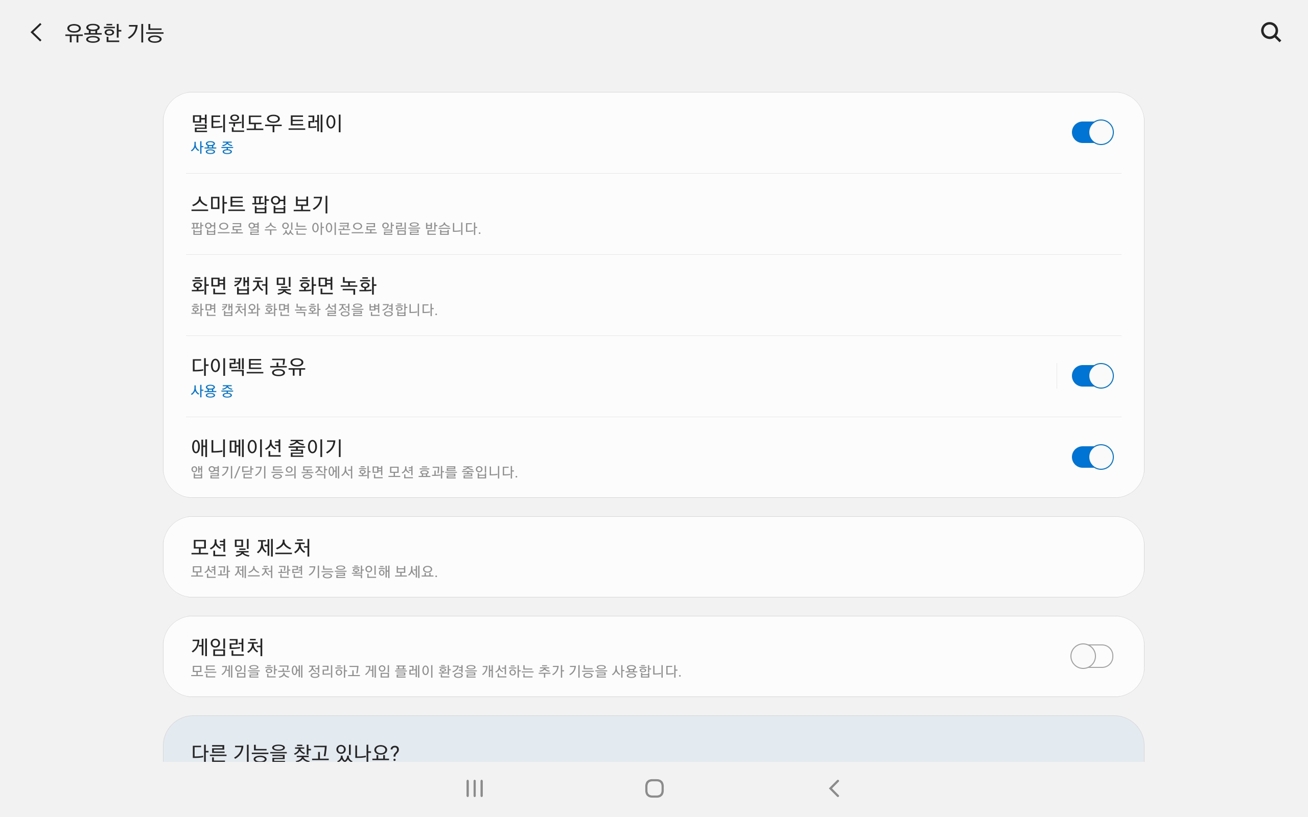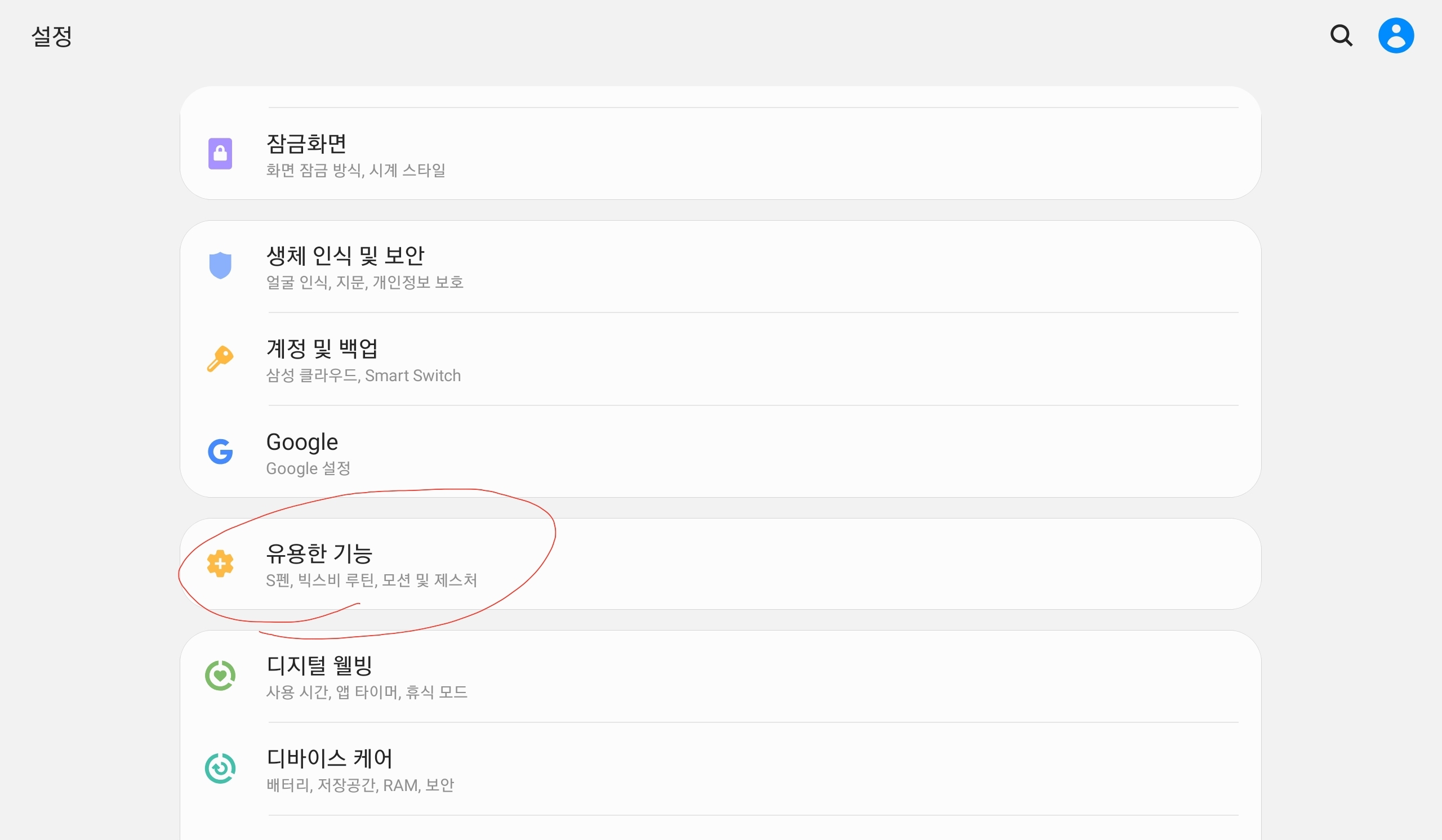 설정창에 들어가셔서 유용한 기능을 클릭하여 줍니다.