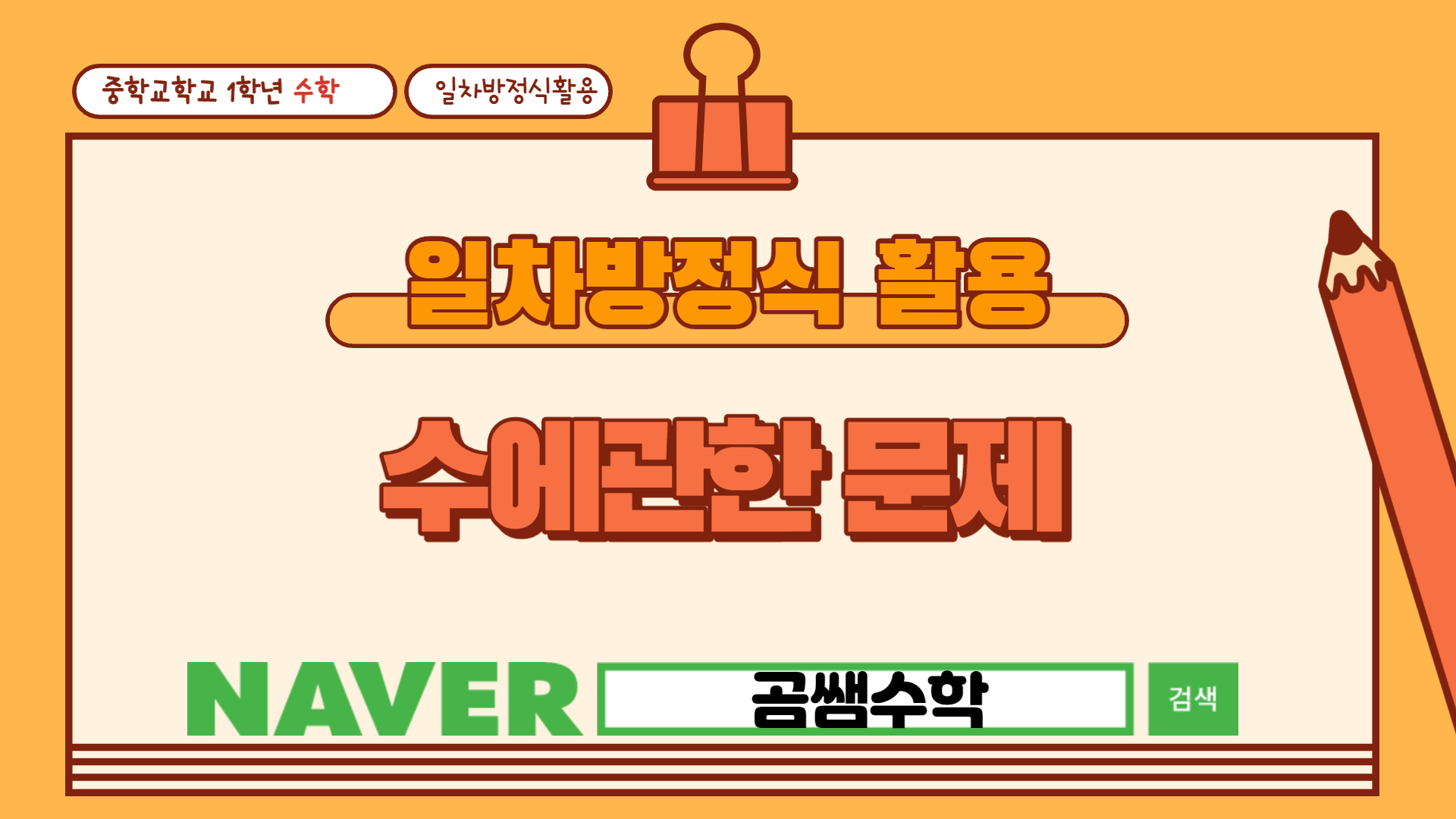 중1수학 일차방정식 활용 수에관한 문제입니다.