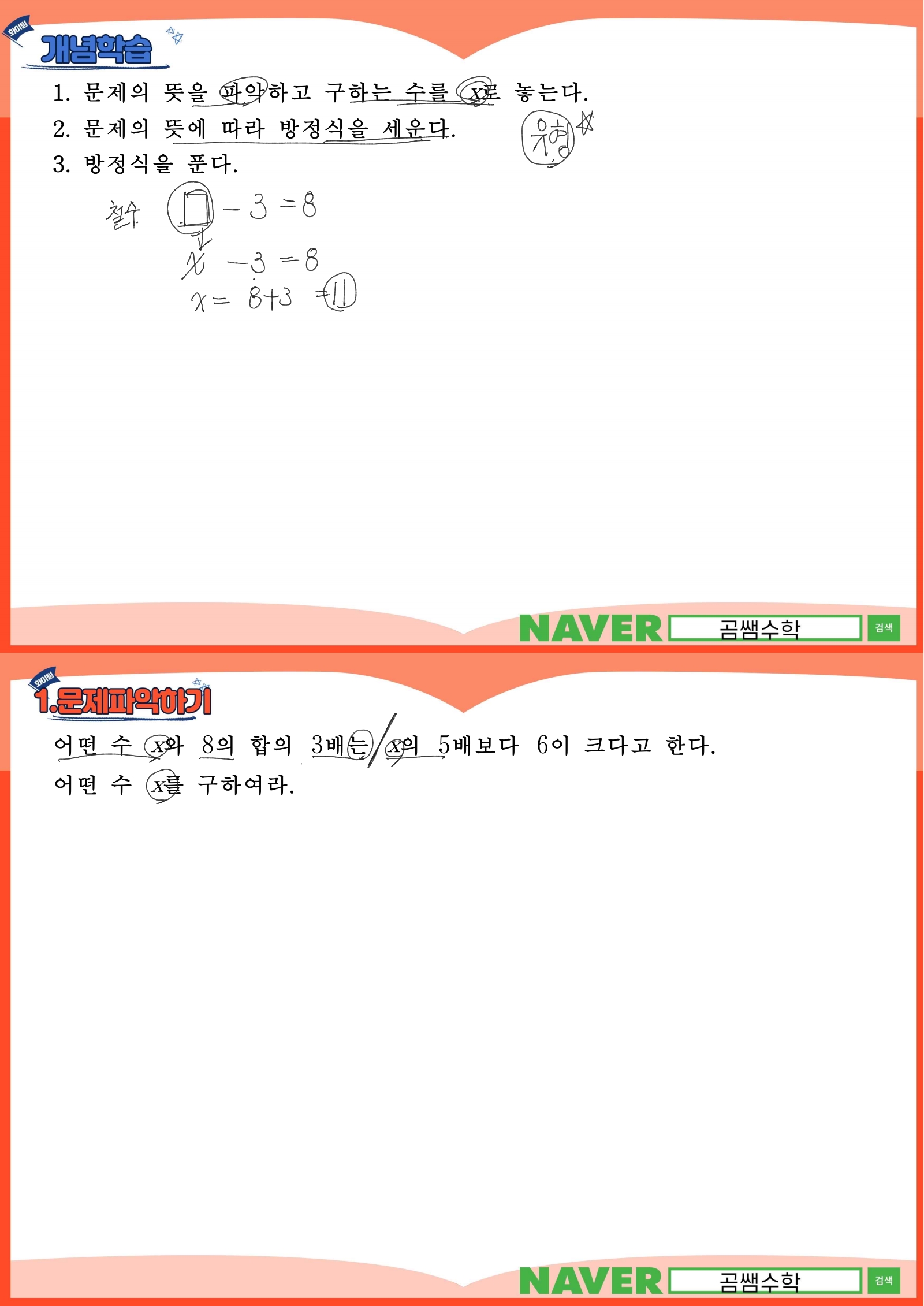 1. 문제의 뜻을 파악하고 구하는 수를 로 놓는다.