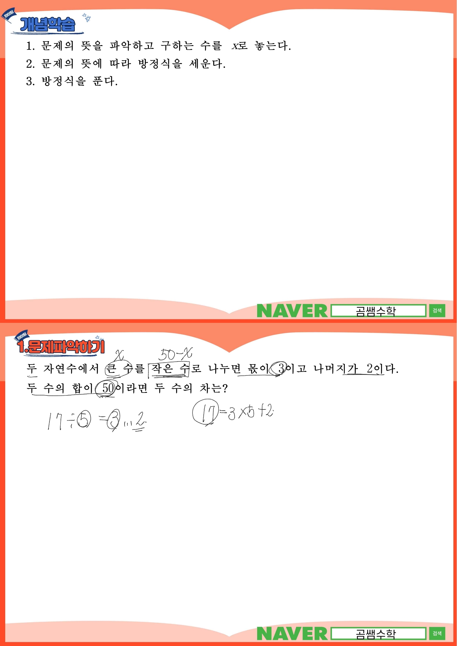 방정식 활용 문제는 유형을 많이 익히고 단계별로 풀이하다보면 실력이 많이 향상됩니다.