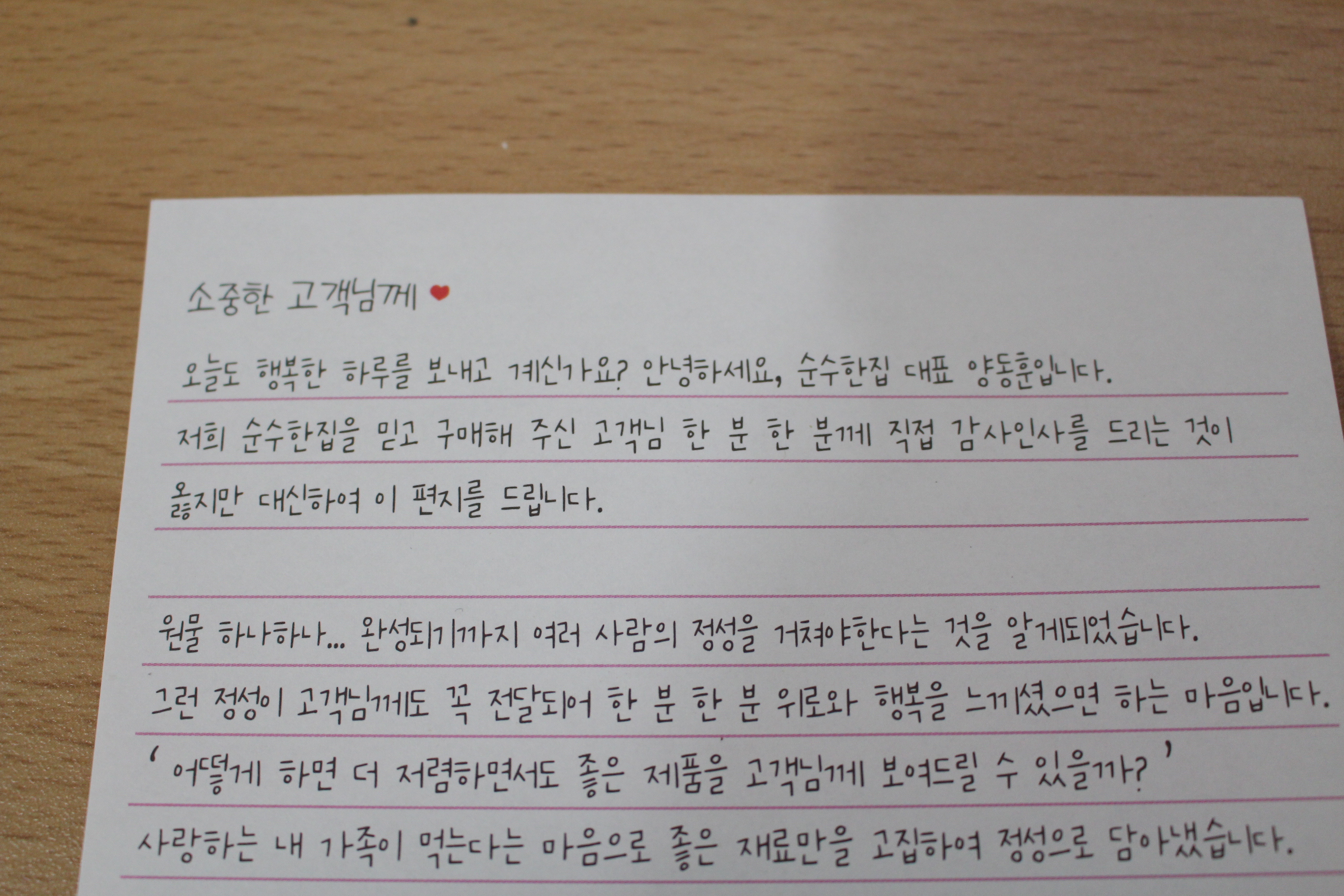 직접 쓴듯한 느낌으로 프린트되어 있는 감사 편지도 있다.