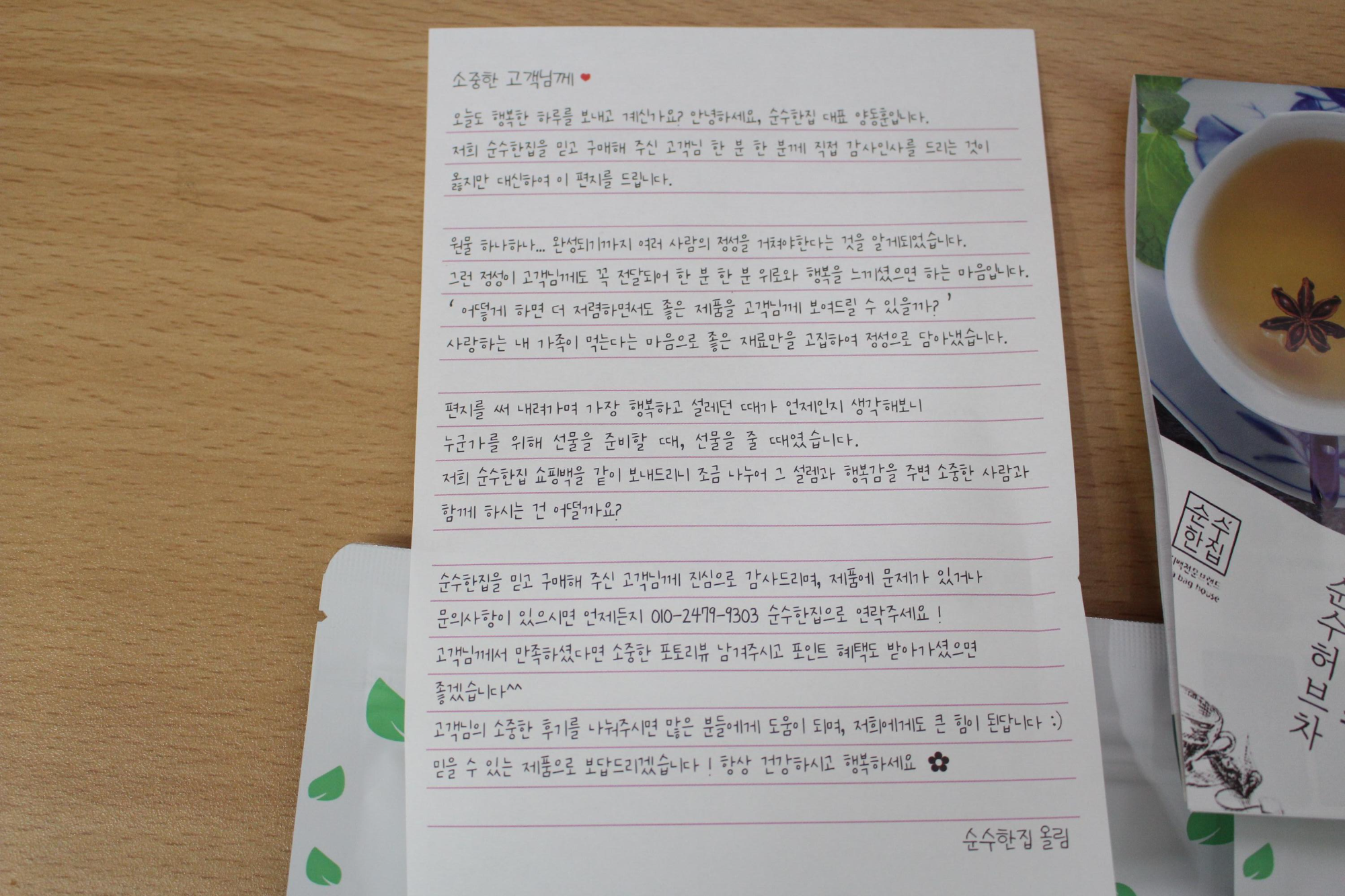 그래..차로 마시면 물도 많이 마시고 몸에도 좋을 거란 판단하에 순수한집에서 여주차 구매
