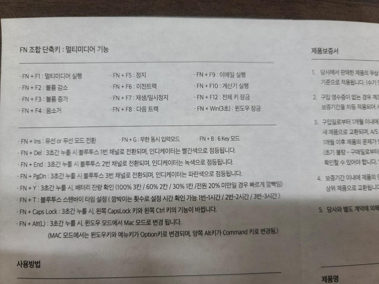 블루투스 연결을 위해서 구매한 키보드니까 fn+ins fn+del 키가 중요하다.