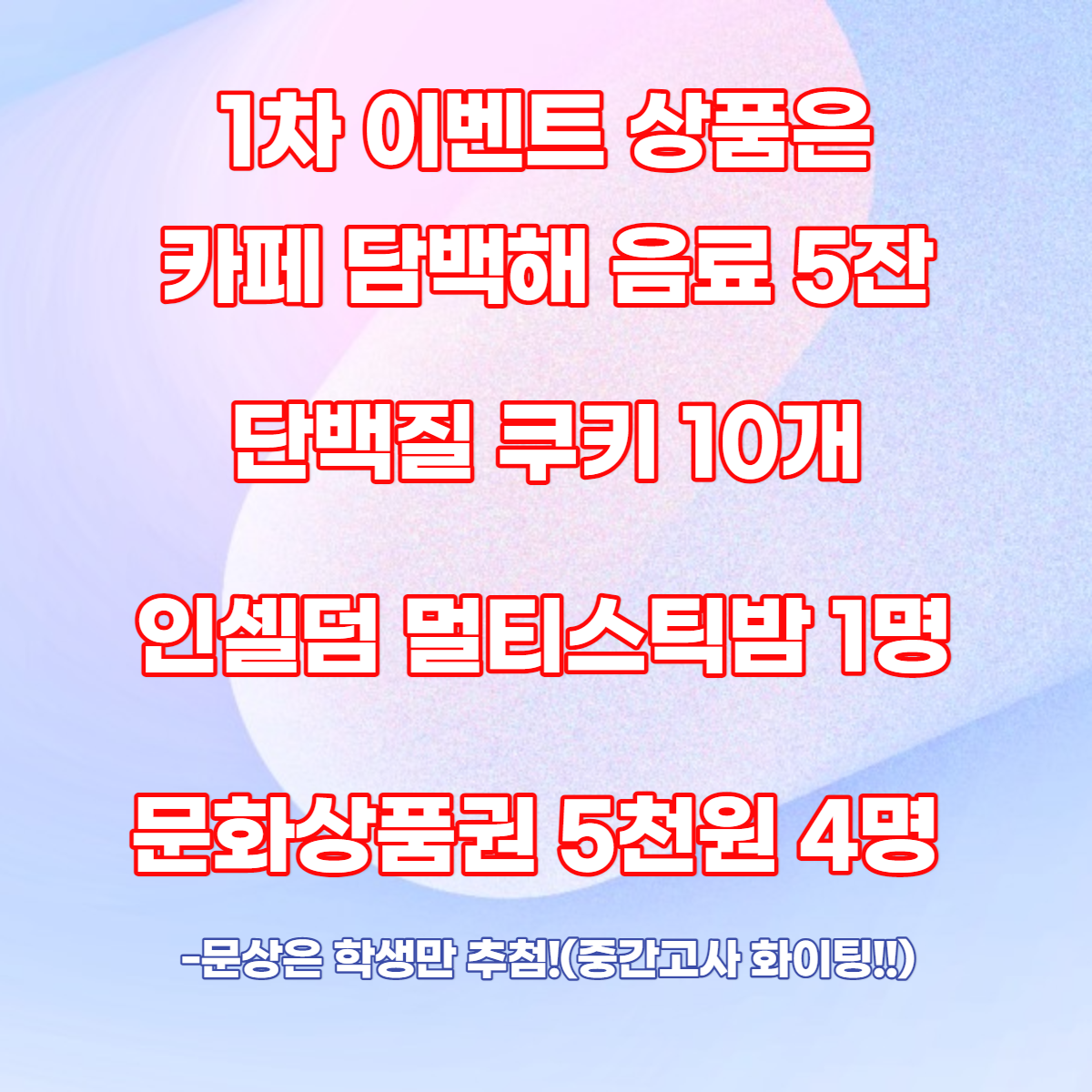 문화 상품권은 학생만 추첨해요!!