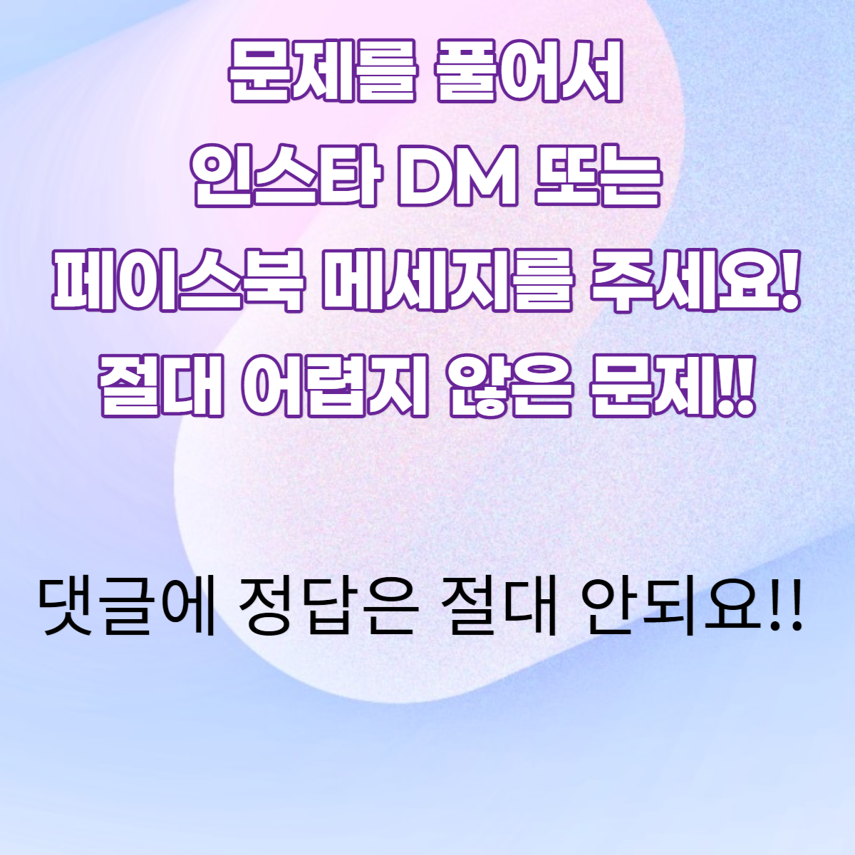 간단한 문제를 풀고 인스타 DM이나 페이스북 메세지를 주세요!!