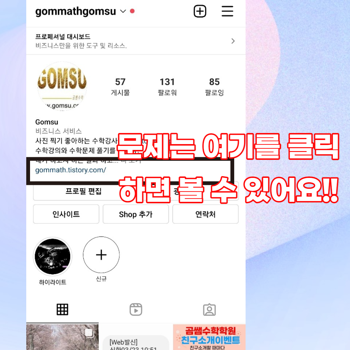 인스타에서는 아래 링크를 클릭하시면 블로그를 볼 수 있어요!!