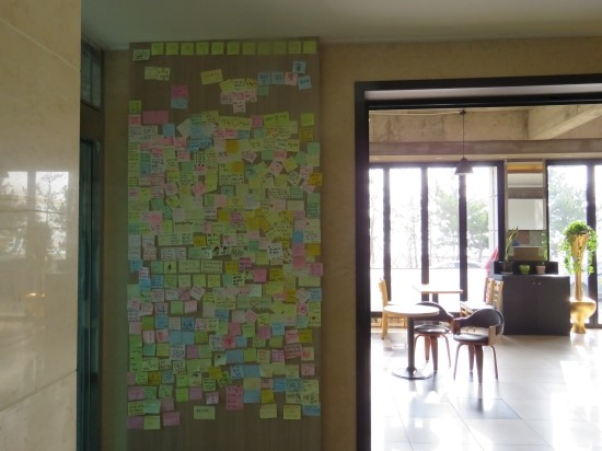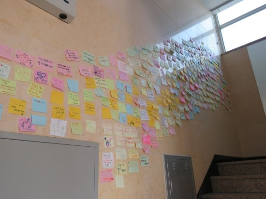 일층에 한쪽 벽에는 다녀간 사람들의 흔적이