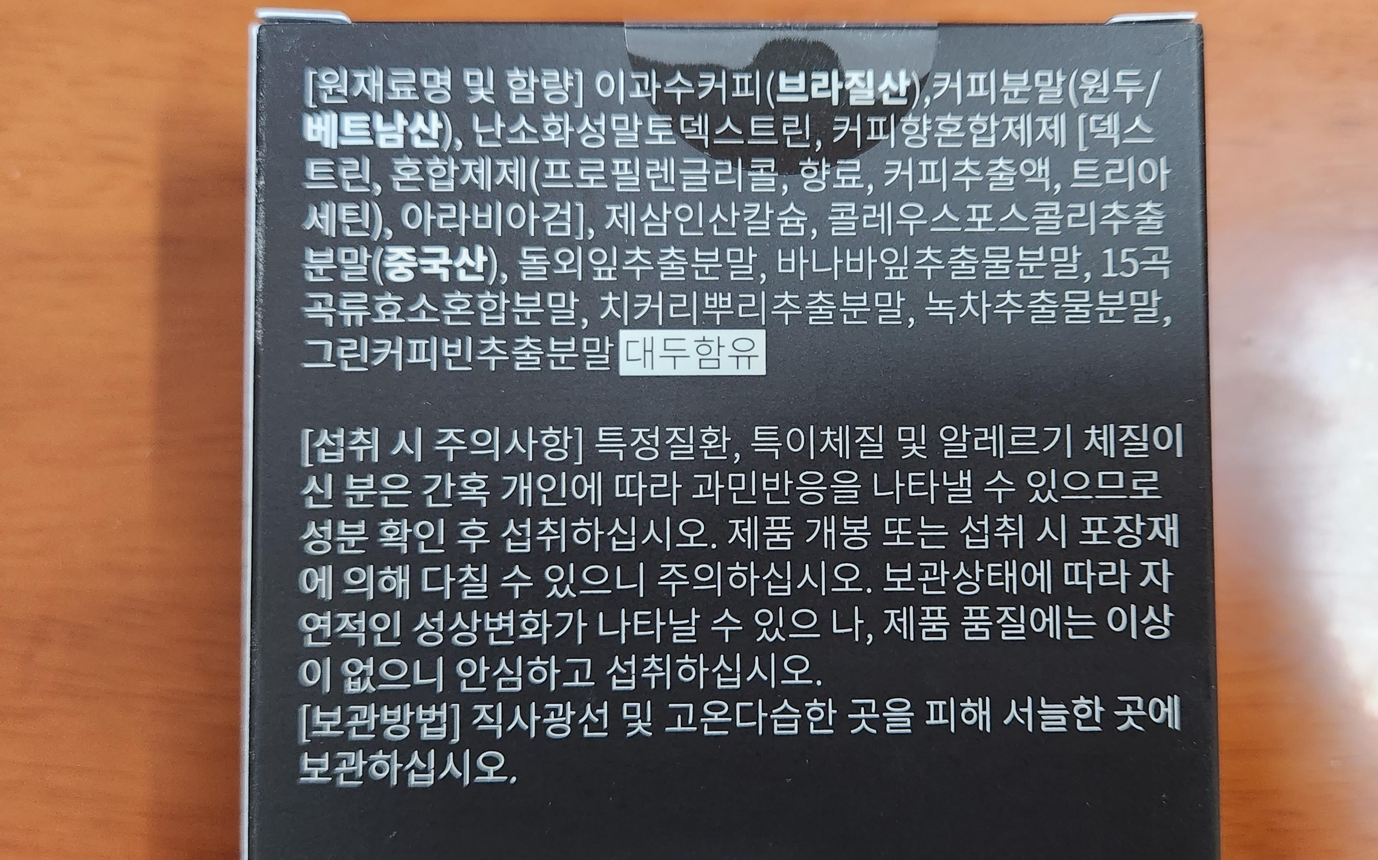 브라질산 이과수커피와 베트남산 커피가 원료이다.