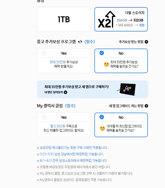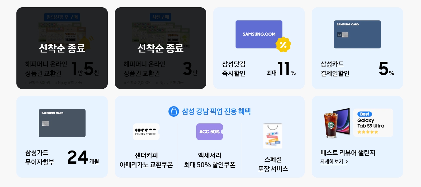 삼성닷컴홈페이지 구매 시 할인 혜택이 많습니다.