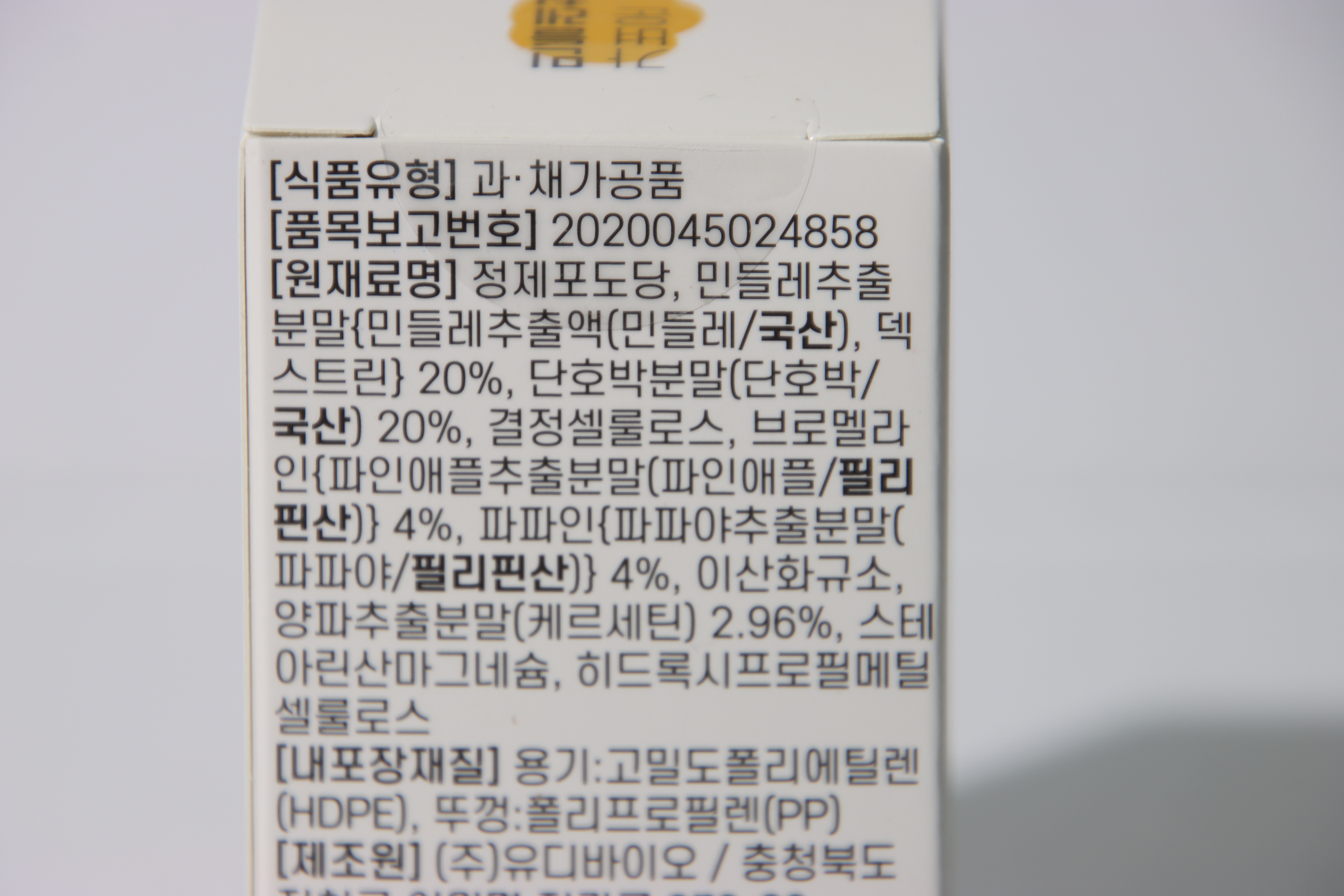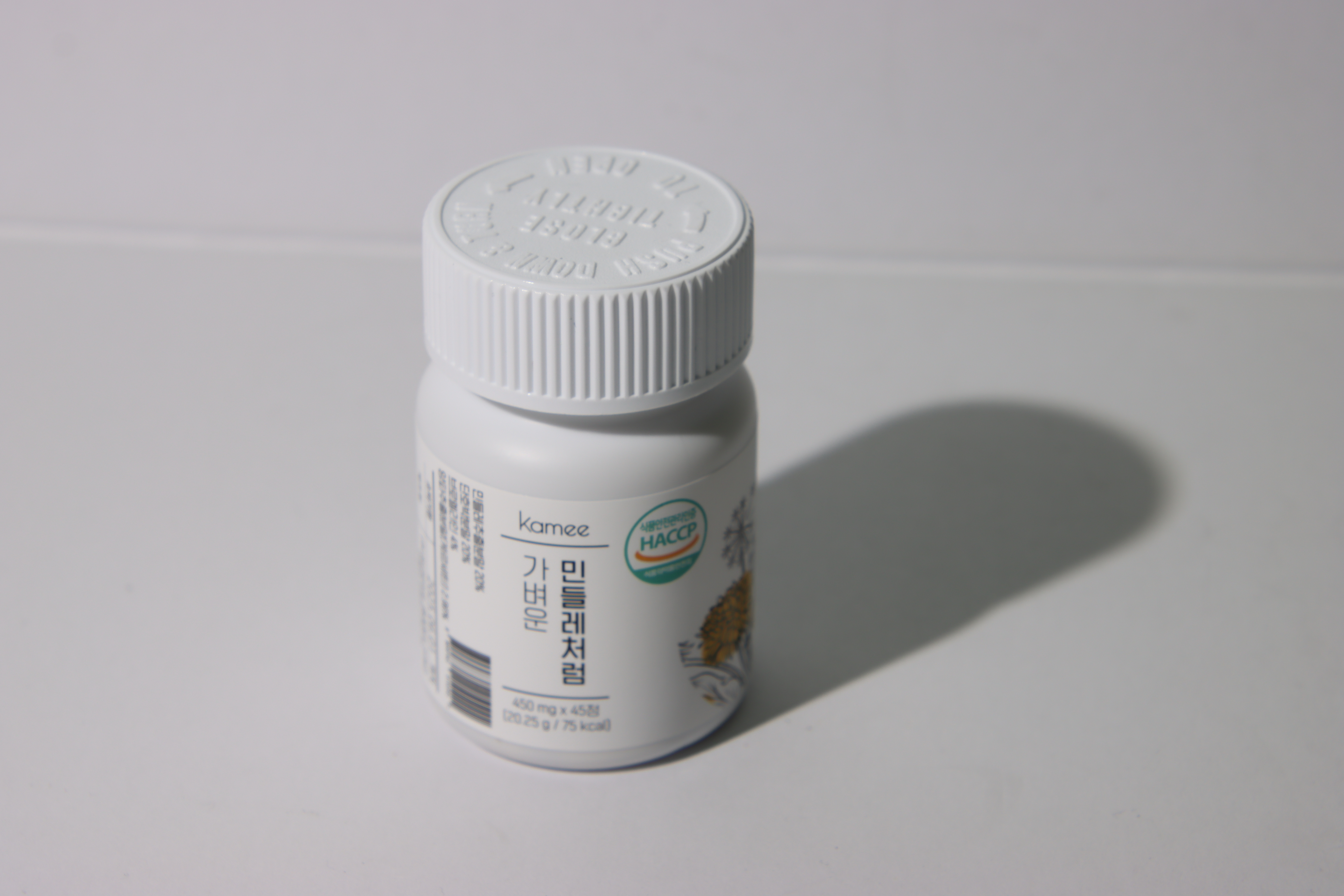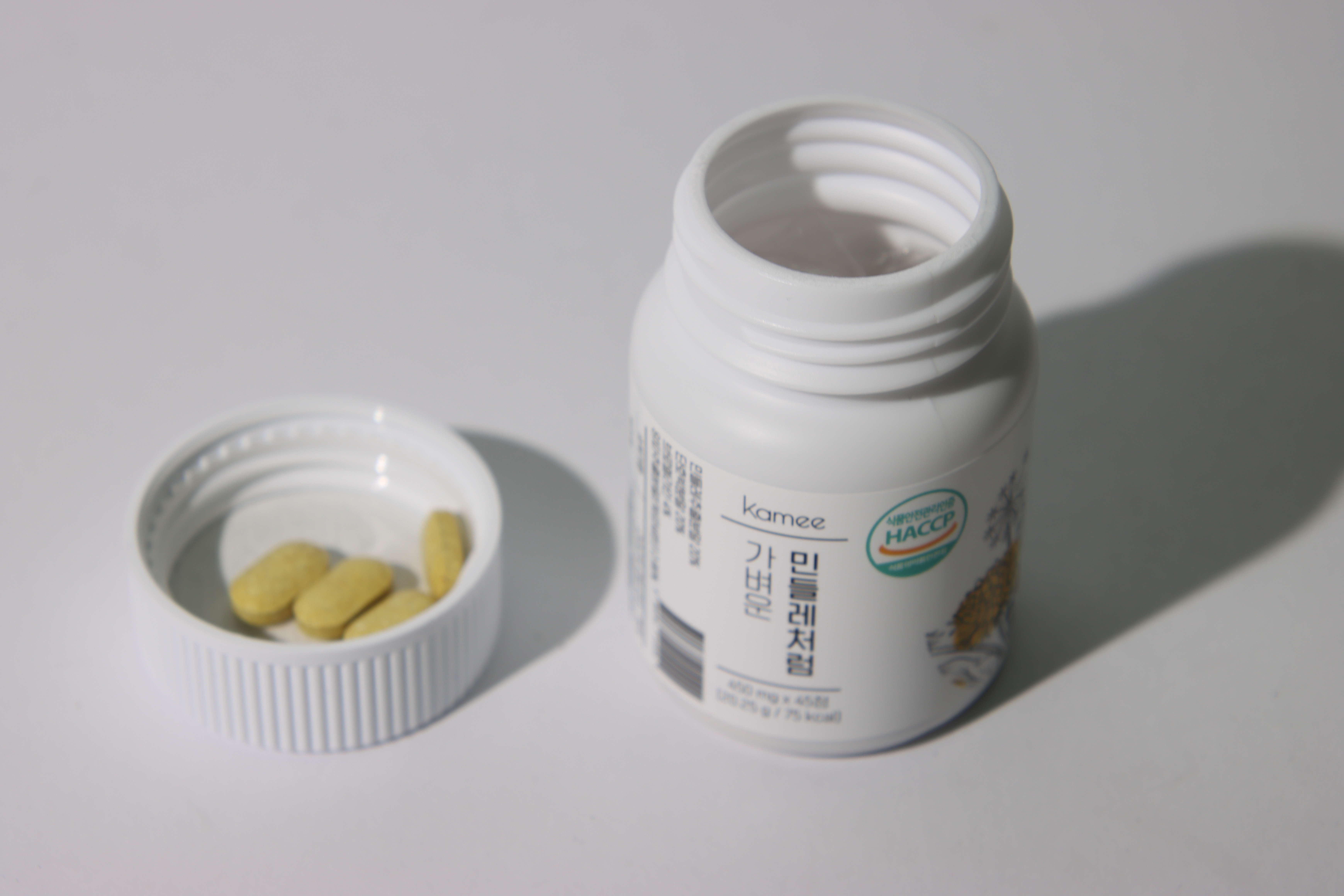 단호박추출 분말이 들어가서 인지, 민들레처럼은 노란색 알약이다.