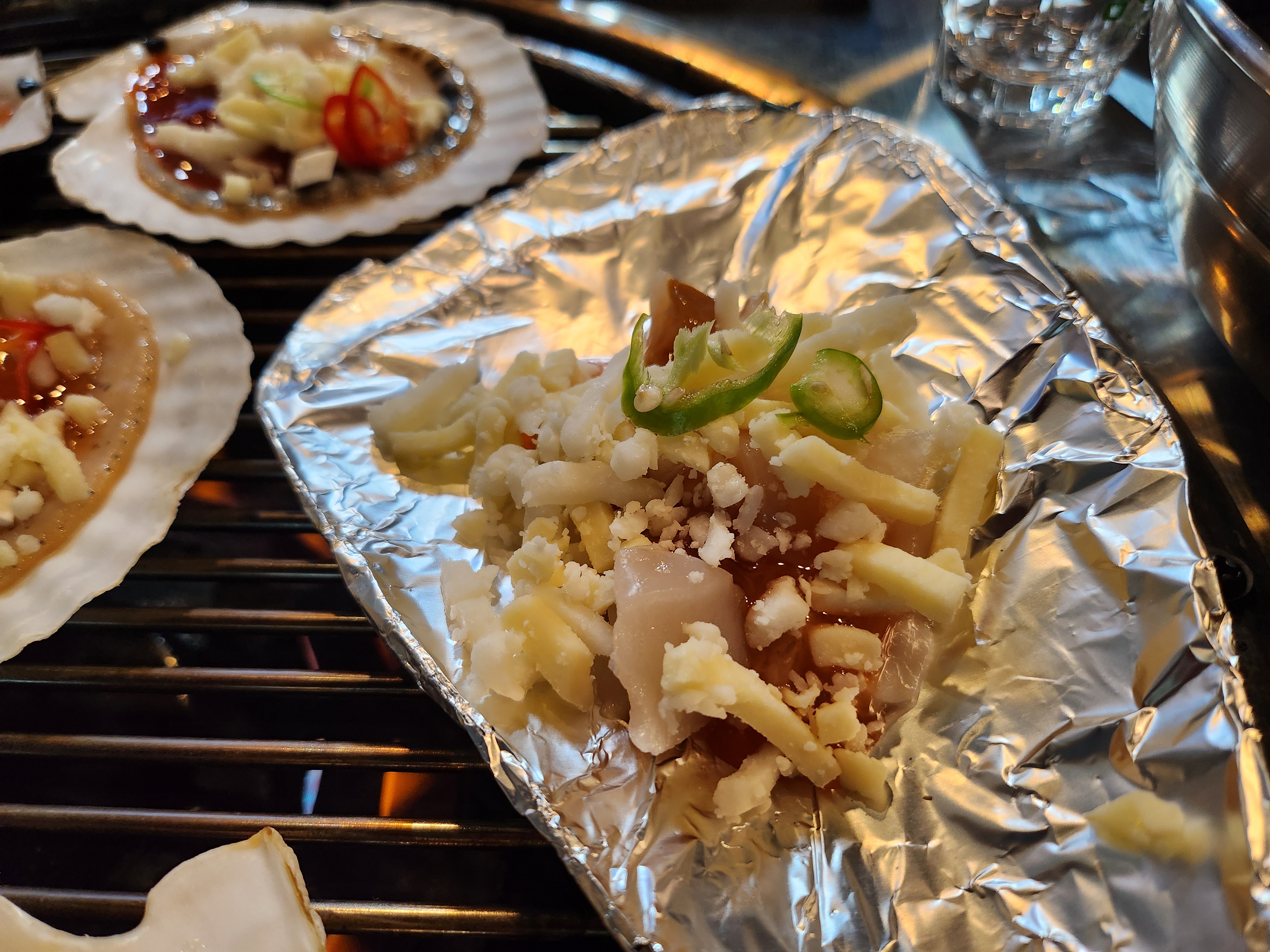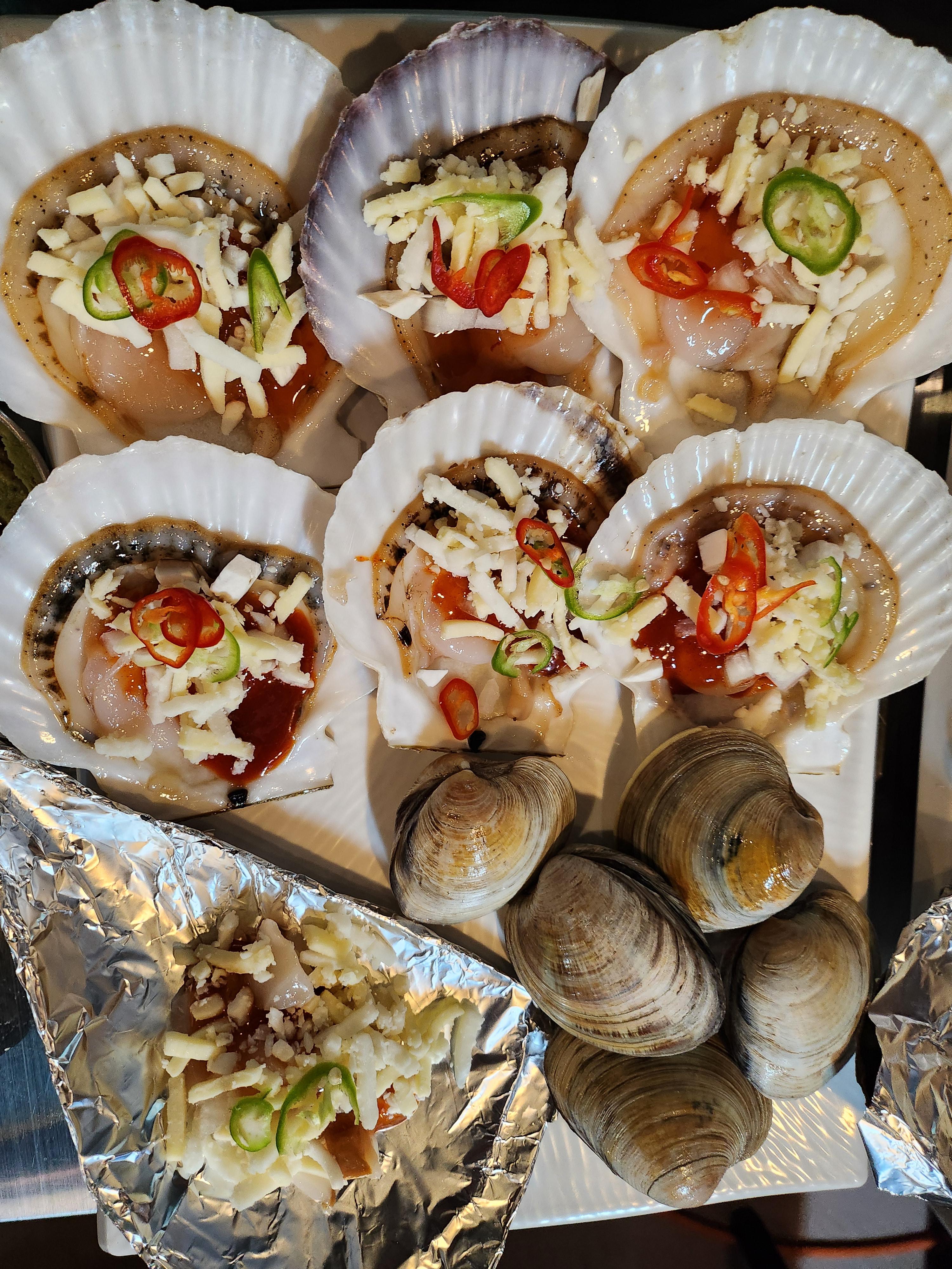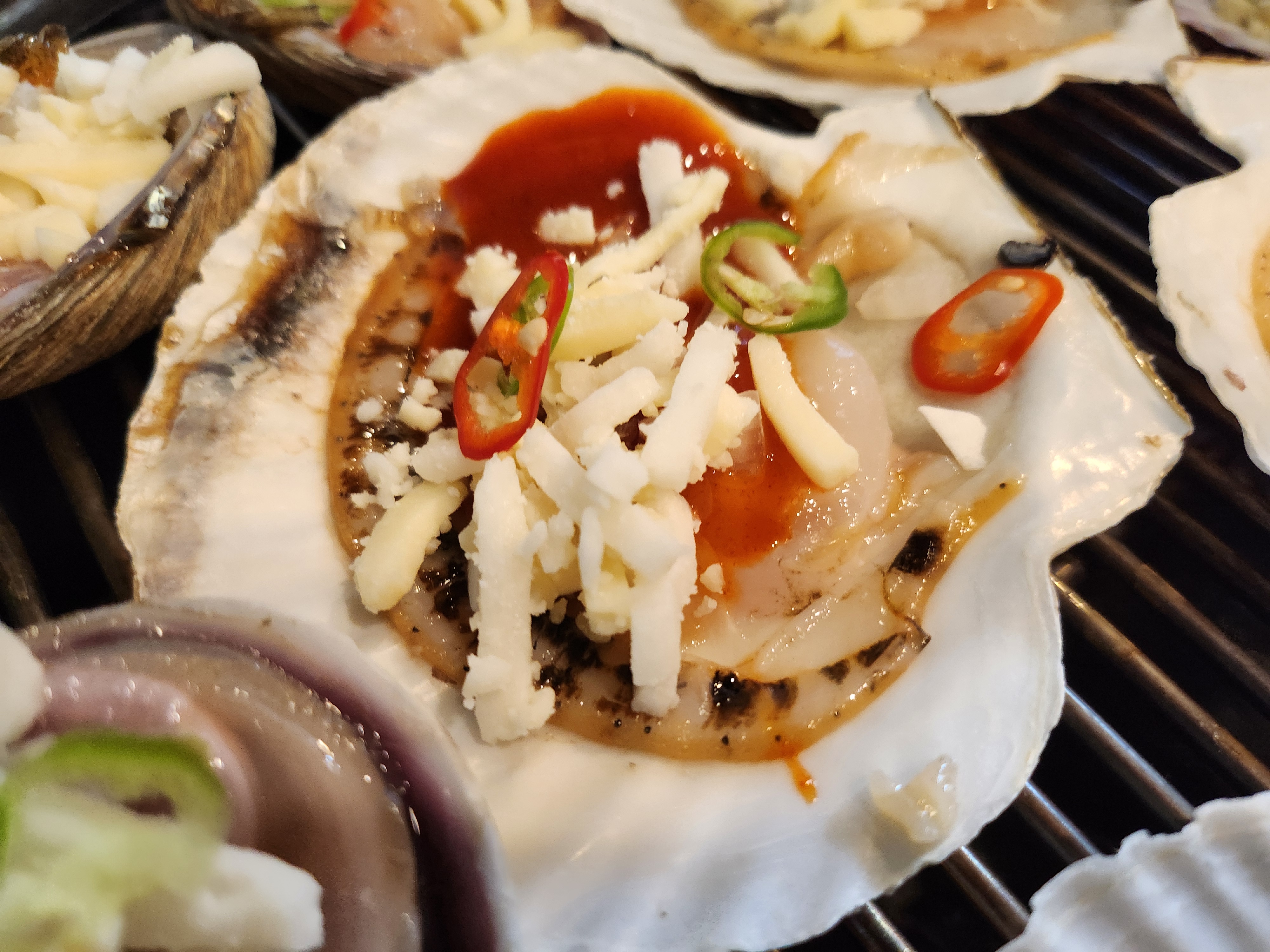 특히 가리비 위에 얹어진 치즈와 고추 토핑이 시각적으로도 군침을 돌게 했습니다.