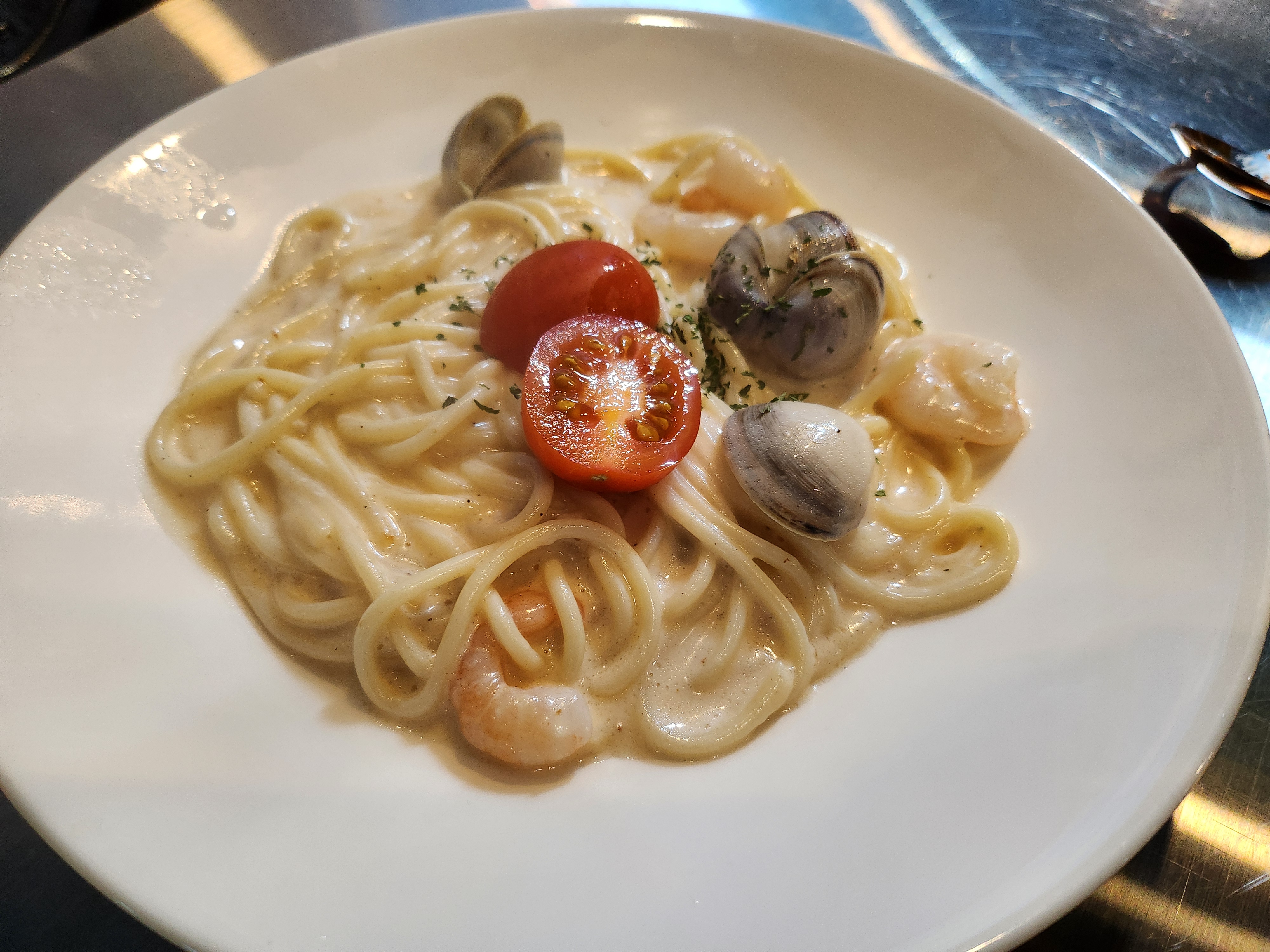 또한, 해산물의 느끼함을 잡아줄 크림 파스타도 제공되었는데, 고소하면서도 부드러운 맛이 일품이었어요.